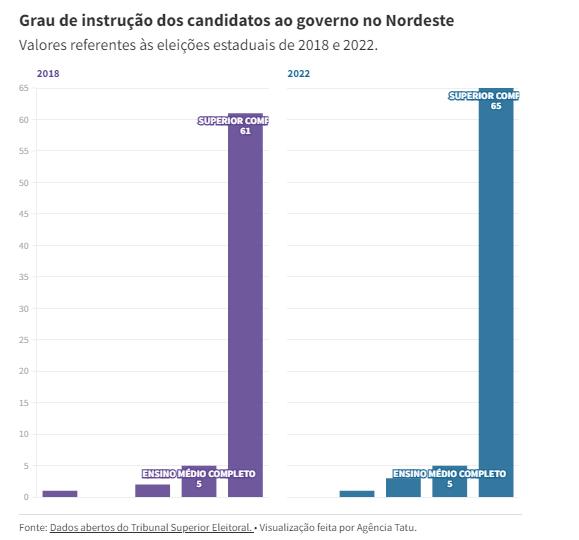 Com a proximidade das eleições de 2022, a Agência Tatu analisou o perfil dos candidatos ao governo em todos os estados do Nordeste. Conforme os dados divulgados pelo Tribunal Superior Eleitoral (TSE), a maioria dos candidatos são homens, brancos e graduados.