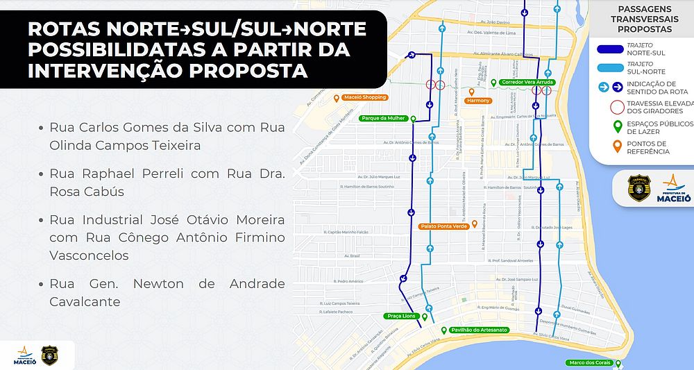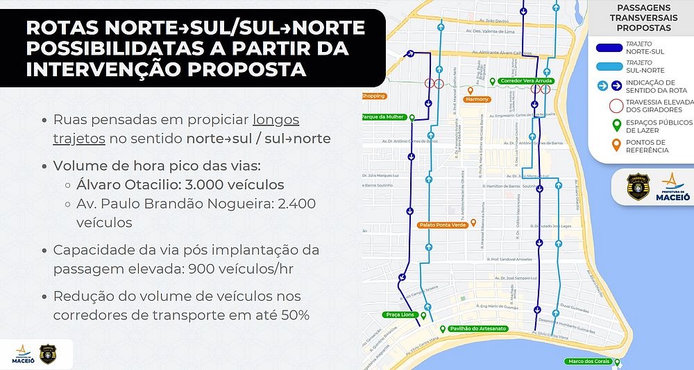 Em coletiva realizada na manhã desta quinta-feira, 23, a Superintendência de Trânsito e Transportes de Maceió (SMTT) mostrou, em detalhes, as propostas para a mobilidade urbana na região do Corredor Vera Arruda, no bairro de Jatiúca. O órgão municipal entende que será necessária a abertura de ao menos quatro vias para desafogar o trânsito no bairro. Veja abaixo os pontos principais:
