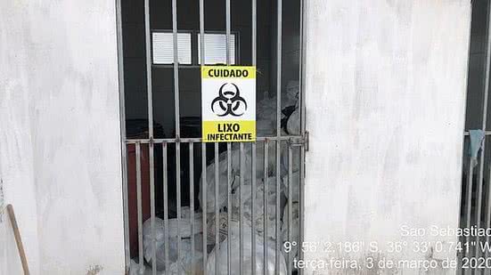 O lixo hospitalar pode apresentar resíduos de alta periculosidade e elevado nível tóxico. Apesar da presença de toneis no hospital, foram encontradas sacolas plásticas jogadas no chão, com todo o material perigoso. A exposição indevida não é somente uma infração ambiental, como também um risco à saúde.