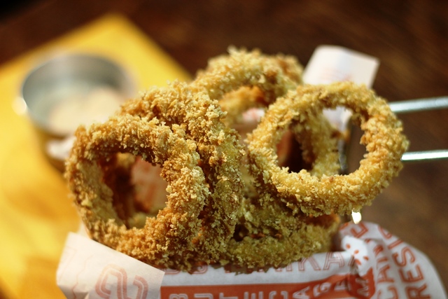 Peguetes – A grata surpresa são as cebolinhas crocantes. Ou seja, as rodelas à milanesa na farinha panko, que deixa tudo mais crocante. Quando provei, imaginei o trabalho que é cortar as rodelas na espessura alta para receber uma camada de ovo, farinha, e ficar perfeita ao paladar. Temos que valorizar quem faz a cozinha, porque é uma arte. Detalhe: peguetes significam pegar o petisco com a mão.