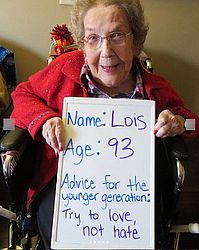 “Tente amar, não odeie”, ensina dona Lois, de 93 anos.