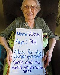 “Sorria e o mundo sorri com você”, lembra dona Alice, de 94.