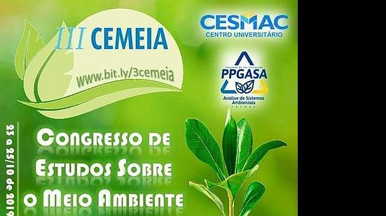 Com o tema “Integrando as ciências em busca da Sustentabilidade”, o Programa de Pós-Graduação Análise de Sistemas Ambientais do Centro Universitário CESMAC - PPGASA, realiza, de 23 a 25 deste mês, o III Congresso de Estudos sobre o Meio Ambiente – CEMEIA. O congresso acontece no Complexo de Inovações Pedagógicas da Instituição, localizado na Rua: Cônego Machado, bairro Farol. A atividade integra a programação da Semana Nacional de Ciência e Tecnologia – SNCT 2019, que acontece também no CESMAC.