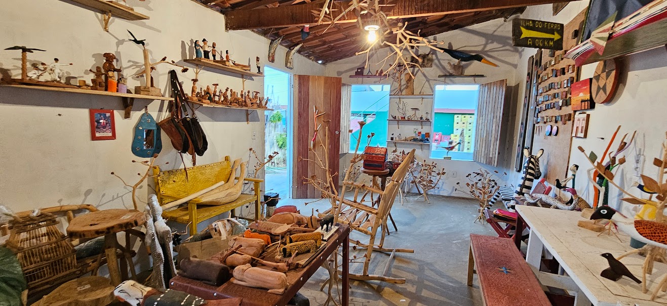 No povoado da Ilha do Ferro tem muita gente que mudou sua vida com o artesanato e o turismo. É o caso do André Fontes Torres, o popular Dedé. Ele tem mil e uma utilidade: artesão, barqueiro, pousadeiro… No seu atelier, têm peças de todos os artesãos das cidades de Pão de Açúcar, Olho D´água das Flores, e Poço Redondo (Sergipe). A especialidade do Dedé são os barcos descartados que viram novos artigos de arte, como bancos, cabideiros…