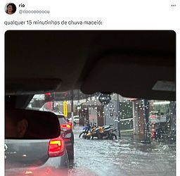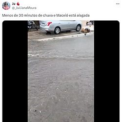 Nas redes sociais, moradores de diferentes locais de Maceió reclamaram do sistema de escoamento da cidade e da rapidez com que as ruas ficaram alagadas. Confira os prints abaixo: