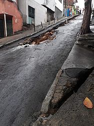 As imagens de uma “cratera” aberta na Ladeira do Bolão, no bairro da Cambona, que estão sendo compartilhadas nesta terça-feira (26) em grupos de Whatsapp, são antigas. O fato foi constatado pela repórter da TV Pajuçara, Nathalia Lopes, que foi até o local e verificou que a rua está com a pavimentação em perfeito estado.