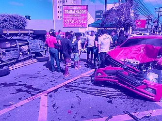 Uma câmera de segurança registrou a colisão entre dois veículos particulares que resultou em duas pessoas feridas, em frente a um hipermercado no bairro Gruta, em Maceió, no último dia 03.