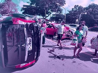 No vídeo, é possível acompanhar o momento em que a Pajero tentou entrar à direita, quando foi atingida pelo Gof na traseira. Com o impacto, a pajero tombou.