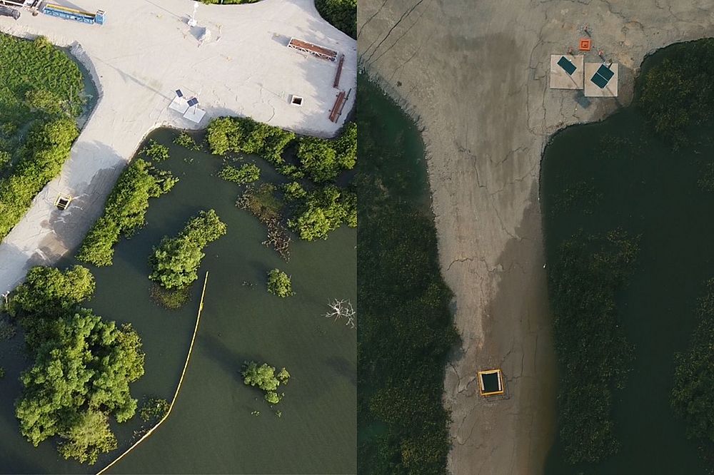 Imagem feita na tarde dessa sexta-feira (à esquerda). Imagem feita na manhã deste sábado (à direita). Foto: Charles Northrup -TV Pajuçara.