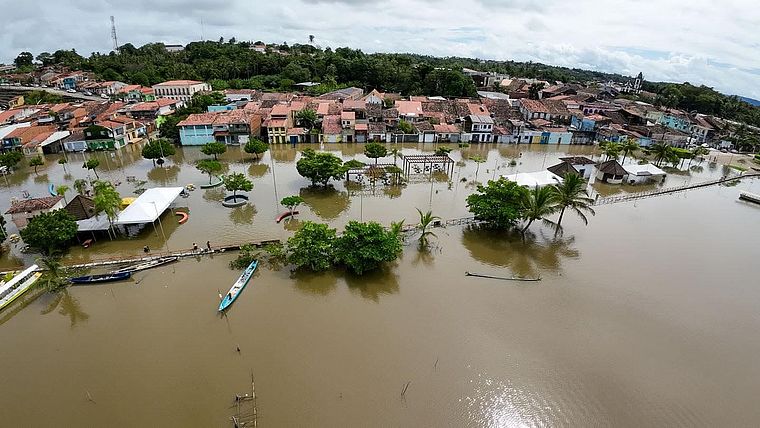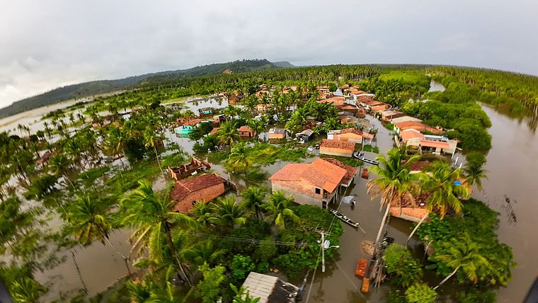 A Defesa Civil de Alagoas divulgou, na tarde deste domingo, 9, imagens aéreas que mostram parte da cidade de Marechal Deodoro, região metropolitana de Maceió, com as ruas completamente alagadas em consequência das fortes chuvas que castigam Alagoas há dias.