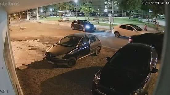 A câmera de segurança de um imóvel, localizado no bairro Serraria, captou o momento em que um policial penal e Jeff Gueiros Rocha, de 46 anos de idade, discutem no trânsito, na noite do último sábado (21).