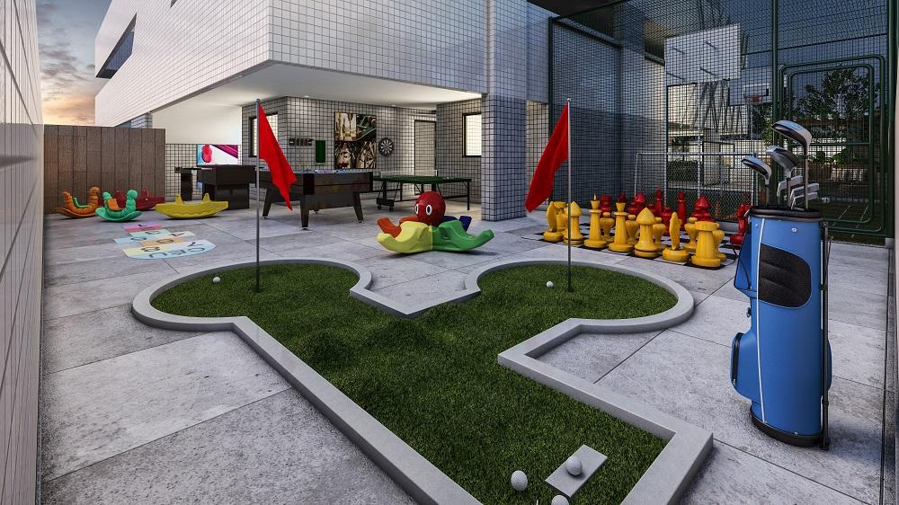 Em sua estrutura de lazer, o condomínio conta com piscina, salão de jogos, campo de minigolf, churrasqueira gourmet e playground. Além disso, pensando no bem-estar dos moradores, o edifício Lyon ainda traz espaços destinados à prática de exercícios e uma hidromassagem.