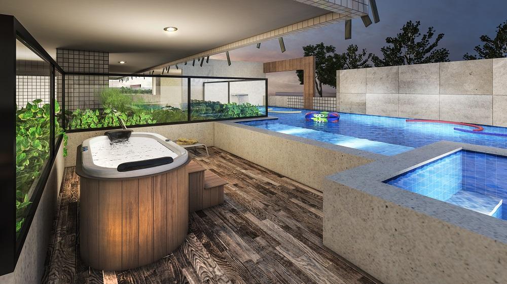 Construção de áreas comuns com materiais nobres e equipamentos como hidromassagem caracterizam bem imóveis de alto padrão. Foto: Lyon / Reprodução