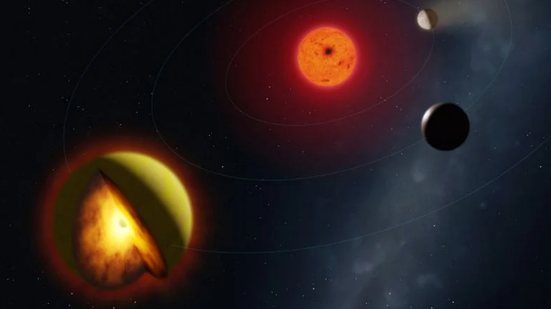 Astrônomos identificaram um possível novo tipo de planeta fora do Sistema Solar, com interior derretido e atmosfera rica em enxofre. O objeto, chamado L 98-59 d, fica a cerca de 35 anos-luz da Terra e foi analisado com dados do telescópio espacial James Webb e de observatórios em solo. O estudo foi publicado na revista científica Nature Astronomy.