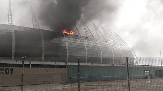 Um incêndio atinge a área interna da Arena Castelão, em Fortaleza, na manhã deste sábado (30). O fogo começou em uma cabine de rádio. Duas guarnições do Corpo de Bombeiros trabalham no local para controlar as chamas.