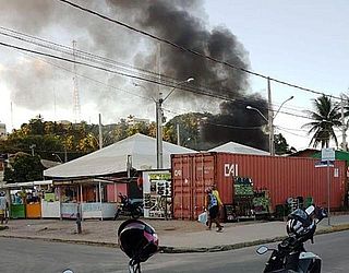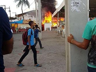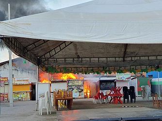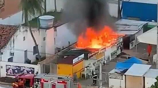 Um incêndio atingiu barracas de uma praça de alimentação próxima a uma pousada localizada na Avenida Senador Rui Palmeira, no município de Maragogi, Litoral Norte de Alagoas, na tarde desta segunda-feira (22).
