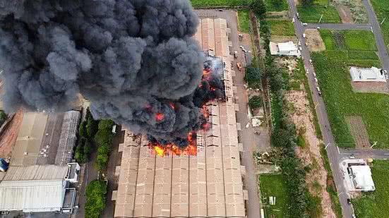 As chamas já foram contidas e não se alastram mais. Agora, os bombeiros vão acessar o galpão em busca de focos de incêndio.