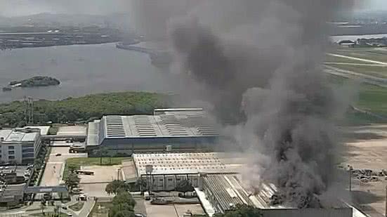 Um incêndio atinge um galpão no terminal de cargas do aeroporto do Galeão, no Rio de Janeiro, na tarde desta quarta (18). Segundo o Corpo de Bombeiros do Rio de Janeiro, o acionamento para a região foi recebido às 13h46. Nove quartéis foram enviados para o local para controlar o fogo.