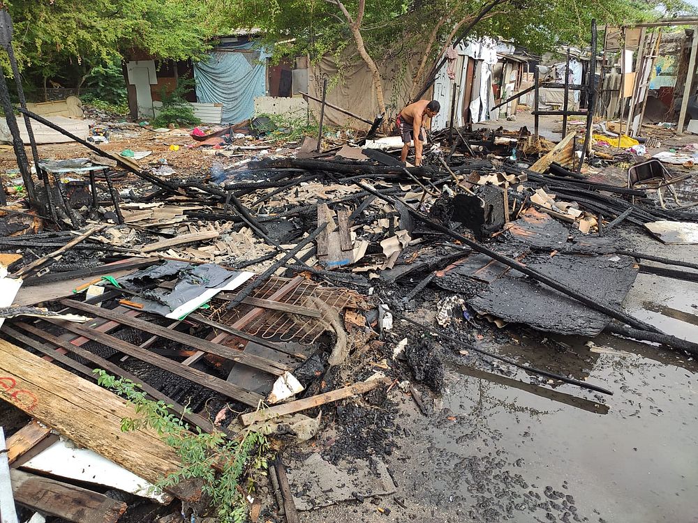 As chamas chegaram a atingir os barracos próximos, mas como a residência ficava um pouco mais isolada, a propagação do fogo foi interrompida.