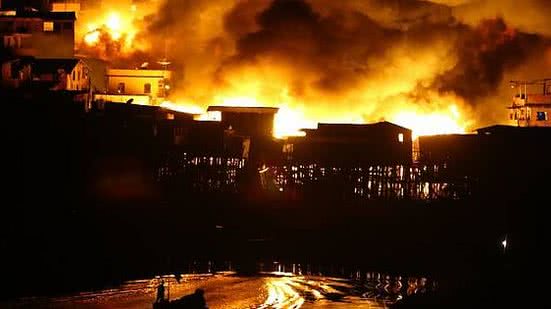 Cerca de 600 casas de madeira foram consumidas pelo fogo no bairro de Educandos, na Zona Sul da cidade. Todos os acessos foram fechados.
