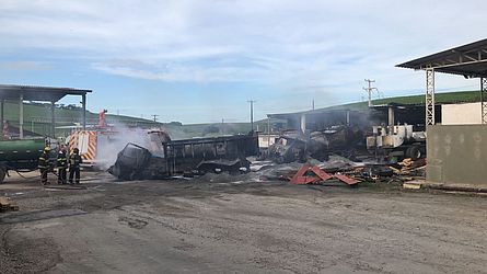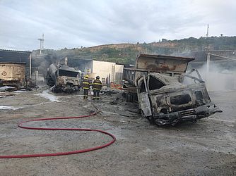 Ainda segundo os militares, o incêndio teria começado após a explosão de um caminhão tanque, que passava por manutenção. Um funcionário estava fazendo um serviço de solda no tanque do veículo que estava carregado com líquido inflamável. Em seguida, o fogo se alastrou e atingiu uma caçamba. Duas viaturas e 11 militares estiveram no local para fazer a contenção das chamas.