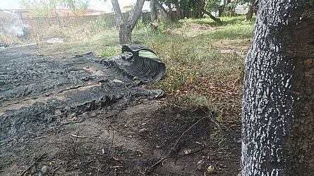 O Corpo de Bombeiros confirmou que duas equipes foram enviadas para o local por volta das 11h10 e encontraram os tubos plásticos empilhados no chão e incendiados. Logo uma fumaça preta subiu na direção do céu e a população de outros bairros da cidade pôde vê-la a quilômetros de distância.