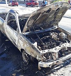 O carro, uma Picape Ford Courrier, teve perda total, de acordo com os militares. O fogo foi debelado pela guarnição com água e líquido gerador de espuma (LGE).