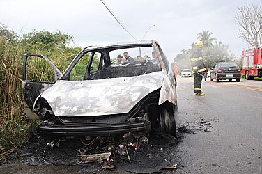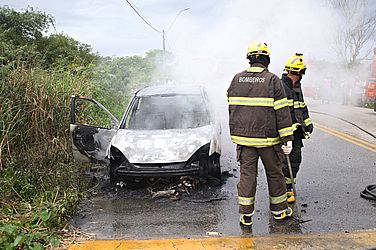 Um vídeo gravado por uma pessoa que passava pelo local mostra o momento da chegada dos caminhões do Corpo de Bombeiros, quando o veículo ainda está em chamas; assista:
