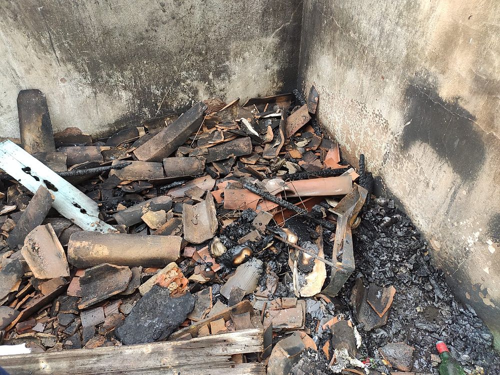 Todos os cômodos da residência ficaram danificados por causa do incêndio e os moradores tiveram que deixar o local.