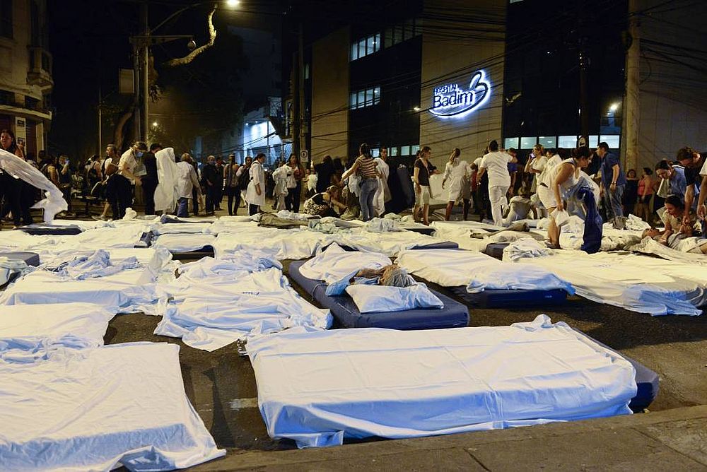 Mais cedo, logo após a notícia de incêndio se espalhar pelos corredores, por volta das 17h, a Rua São Francisco Xavier se transformou em um ambulatório ao ar livre. Pacientes eram trazidos dos dois prédios do hospital e acomodados em colchões. Em seguida, eram levados para uma creche e para a garagem de um edifício, vizinhos ao hospital, ou transportados em ambulância para hospitais e clínicas vizinhos.