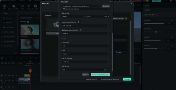 Assim que concluir as edições, tudo o que resta fazer é clicar em “exportar”, na parte superior direita da janela do programa. Há opções de salvar o material no próprio dispositivo, mas também de postá-lo no TikTok, Vimeo ou YouTube. Vc ainda pode escolher a qualidade da compressão.