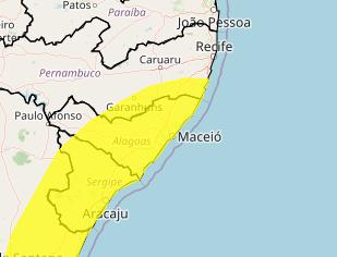O alerta é válido para 93 municípios de Alagoas. Foto: Inmet
