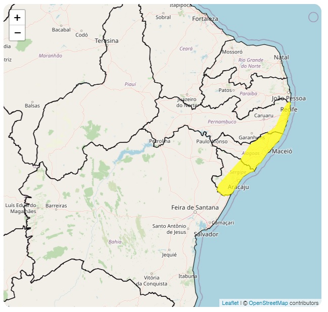 O Instituto Nacional de Meteorologia (Inmet) divulgou na manhã deste domingo (09), alerta amarelo para o estado de Alagoas, mas ainda com perigo potencial de acumulado de chuva para 73 municípios do estado.
