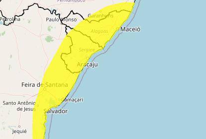 O Instituto Nacional de Meteorologia (Inmet) prorrogou o alerta, divulgado nessa última quinta-feira (25), de fortes chuvas para 93 municípios de Alagoas. O aviso meteorológico de cor amarela, que tem grau de severidade classificado como "Perigo Potencial", é válido até às 10h deste sábado (27).