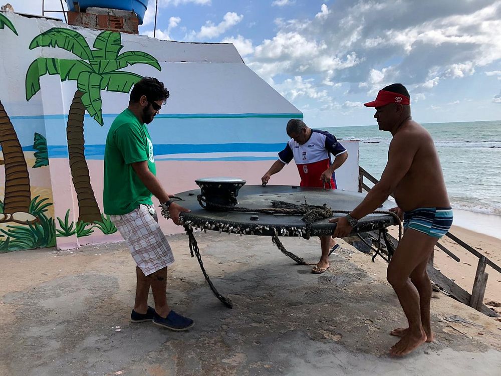 Um barraqueiro encontrou, na manhã desta sexta-feira (14), um objeto, no mínimo estranho, no mar da Praia da Sereia, em Maceió. O disco, de aproximadamente 2 metros de circunferência, foi recolhido por técnicos do Instituto Biota de Conservação que comunicou o achado às autoridades.