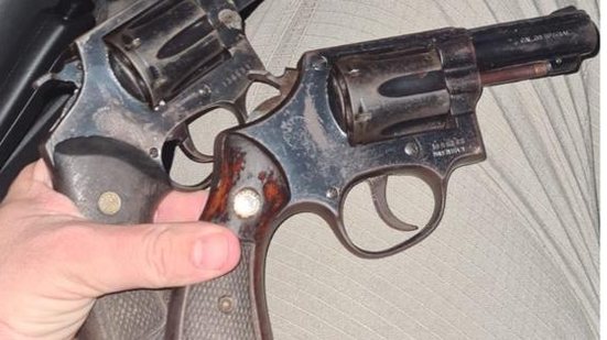 O criminoso também estava com dois revólveres, 11 munições intactas, 65g de maconha, 10g de crack, duas balaclavas e uma balança de precisão. Quatro balinhas de maconha foram encontradas, mas o suspeito disse que era para uso pessoal.
