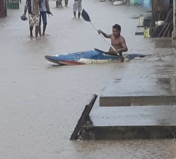 Em União dos Palmares, o Riacho Canabrava transbordou e as ruas foram tomadas pela água.