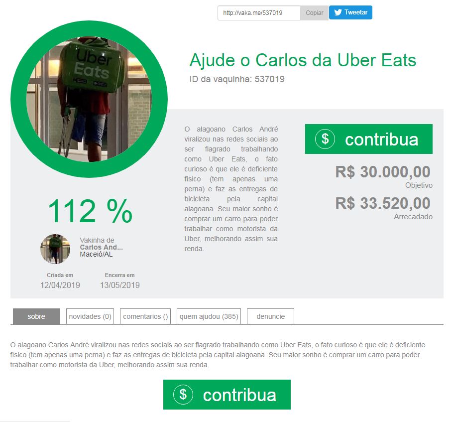 A foto rapidamente viralizou, tendo mais de 18 mil curtidas. Foi daí que foi criada uma vaquinha online, para juntar dinheiro para realizar o sonho de Andrezinho: comprar um carro, podendo assim aumentar sua renda. O pedido inicial de R$30 mil foi conquistado em um dia, com direito a ultrapassar a meta.