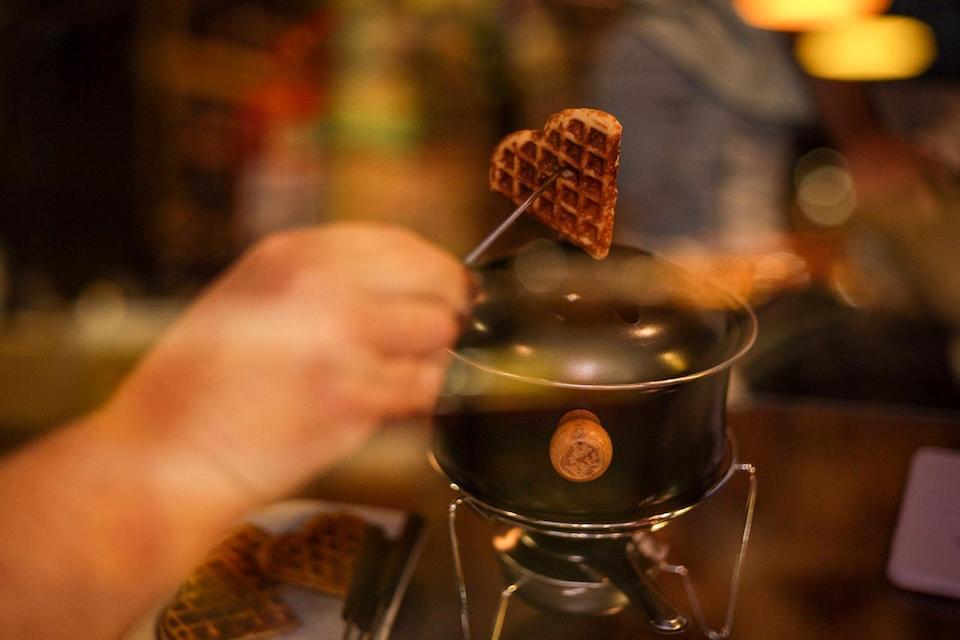 Mini waffles para mergulhar no chocolate quente. Foto Felipe Miranda