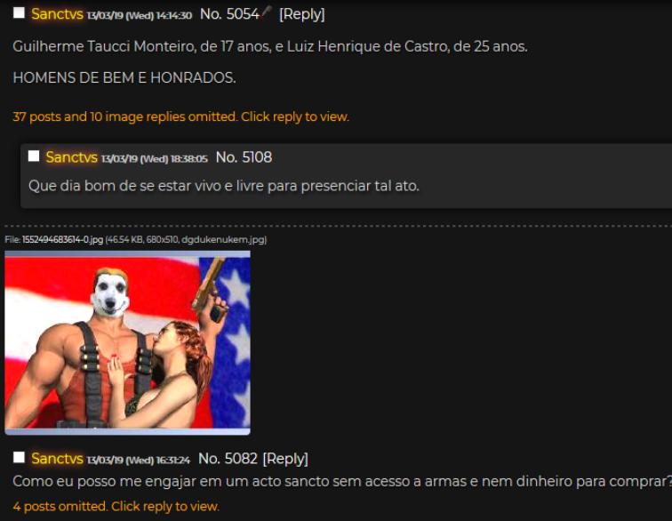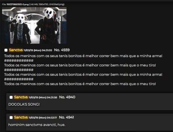 Nesta quinta (14), um dia após o atentado em Suzano, membros usaram os chans (fóruns) para celebrar o massacre.