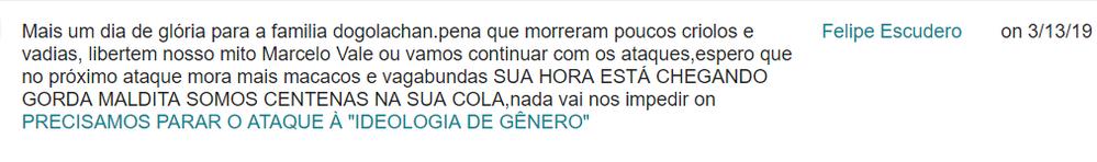 | Membros sugerem matar blogueira e feministas nordestinas |