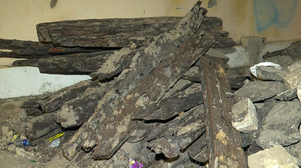 Vestígios de trilhos dos antigos bondes de Maceió encontrados durante escavações das obras do Centro de Maceió. Reprodução TV Pajuçara