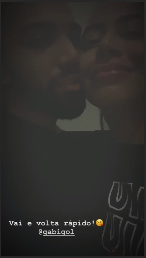 Através dos Stories, a irmã de Neymar aparece aos beijos com o namorado, e escreveu: “Minha criança! Vai e volta rápido!”.