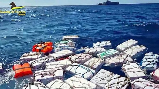 Quase 2 toneladas de cocaína foram encontradas boiando no mar perto da Itália. A polícia do país disse nesta segunda-feira (17) que trata-se de uma apreensão recorde.