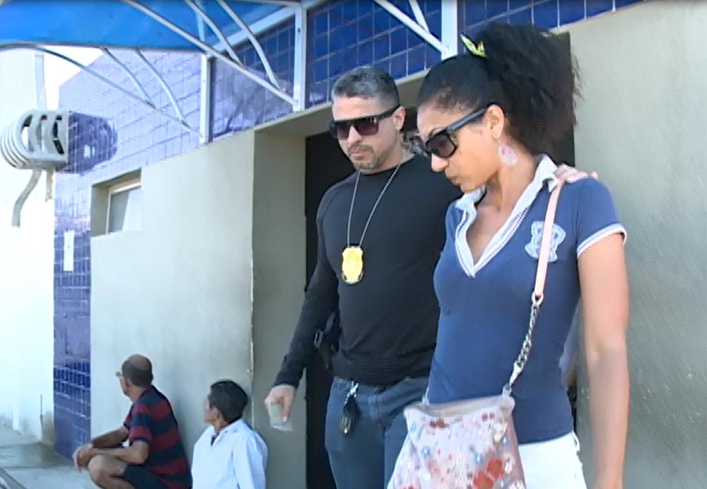 Cléa Fernanda deixa Central de Flagrantes após prestar depoimento (Crédito: Reprodução TV Pajuçara)