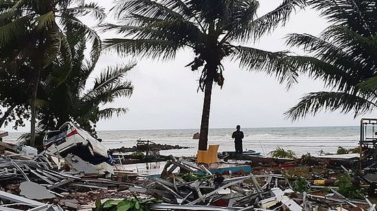 Imagens publicadas no Twitter mostram carros arrastados pelo tsunami. Os distritos mais atingidos foram de Pandeglang, Seran e Lampung Selatan. Só na região de Pandeglang há 624 feridos.