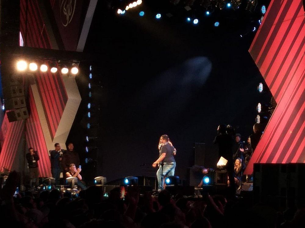 Sempre brincalhona, a artista disse que estava com vontade de dançar com alguém da plateia. Ela escolheu um homem e perguntou se ele realmente sabia dançar. A cantora ainda brincou: "Vai se apaixonar por mim ou não?".