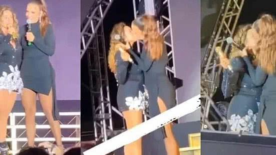 Durante participação no show de 40 anos de carreira de Daniela Mercury, a cantora Ivete Sangalo surpreendeu a amiga e deu um beijo nela durante a apresentação. O episódio aconteceu no show Micareta Rio, na Sapucaí, no Rio de Janeiro, neste domingo (22/10).