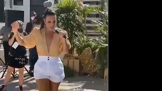 A cantora Ivete Sangalo fez um show surpresa nesse domingo, 14, na cobertura de um edifício no Horto Florestal, em Salvador. 'Mainha' estava acompanhada de Thaynara OG, a atriz Antônia Moraes e Hugo Gloss.