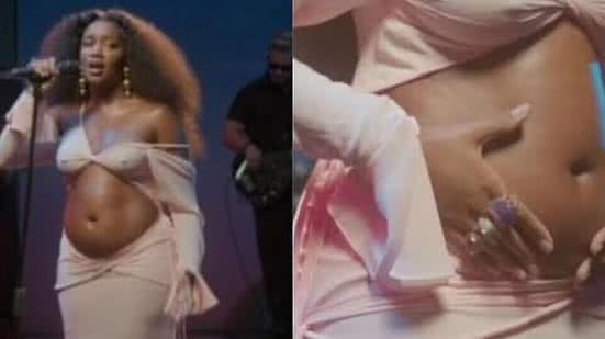A cantora Iza exibiu, pela primeira vez, a barriga de grávida de três meses. Ao lado da banda, a artista apareceu produzida em uma transmissão ao vivo feita nas próprias redes sociais, que havia anunciado no mesmo dia em que a gravidez foi anunciada na quarta-feira (10).